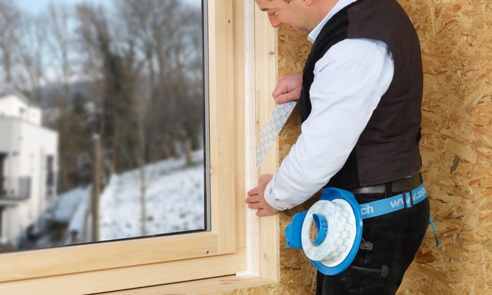 This symmetrically pre-folded and strongly adhesive tape is especially suitable for connection to window and door frames involving indoor airtight layers.