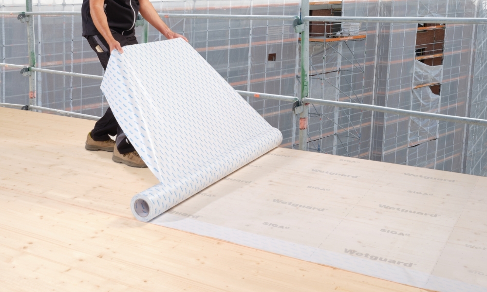 Rainproof and robust full-surface self-adhesive membrane for reliable moisture protection of timber elements during transportation, assembly and the construction phase.